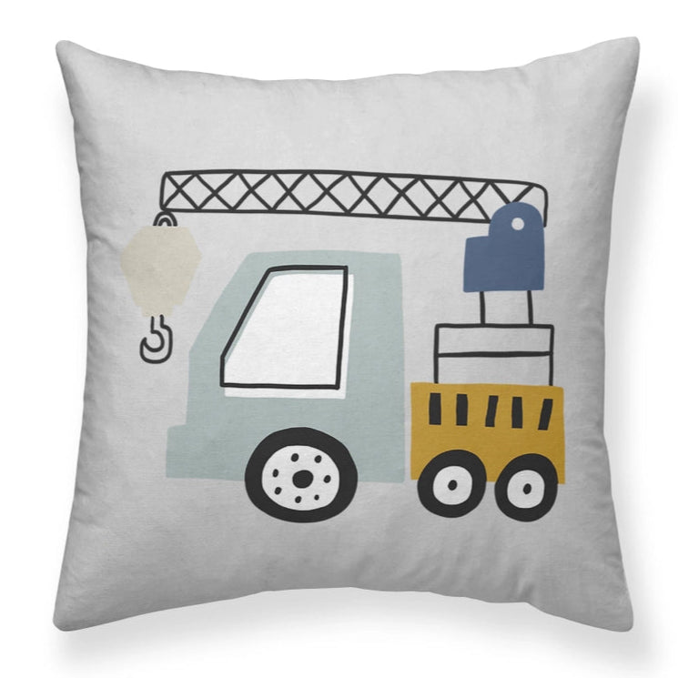 Rev up the fun in your little one’s room with this adorable Kids & Cotton Construction Truck Cushion Cover! Featuring a cheerful, cartoon-style crane truck in muted tones of blue, mustard, and soft grey, this cushion cover is perfect for mini builders and truck lovers alike. It's playful, modern, and designed to inspire imagination in every corner of their space.